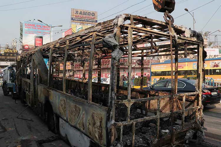 ভাঙচুর চালানো হয় বেশ কয়েকটি বাসেও। আগুন জ্বালিয়ে দেওয়া হয় দু’টি বাসে। চলন্ত অবস্থাতেই একটি বাসকে দাউদাউ কর জ্বলতে দেখা যায়। প্রাণ বাঁচাতে বাস থেকে নেমে পালিয়ে যান যাত্রীরা। দমকলের গাড়ি আগুন নেভাতে গেলে তাদের গাড়িতেও ভাঙচুর চালানো হয়।
