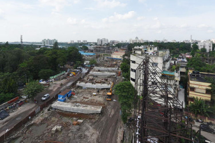 মাঝেরহাট ব্রিজের কাজ শেষ হওয়া নিয়ে এখনও ধোঁয়াশা রয়ে গিয়েছে। —নিজস্ব চিত্র।