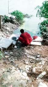 পাশেই বাইপাস ও বাসন্তী হাইওয়ের মাঝে অনন্তবাদাল, ধাপা-দুর্গাপুর, খানাবেড়িয়া, উঁচুপোতা, আরুপোতা, বৈঁচতলাতেও পানীয় জল সীমিত। পুরসভার জলের গাড়ির জন্য প্রতীক্ষার শুরু হয় ভোর থেকে। এ ছাড়া, জল বলতে ভরসা ভেড়ি বা ডোবার দূষিত জল। এখানেও ভেড়ির উপরে মাচা করে তৈরি শৌচাগার। যত্রতত্র জমে নোংরা জল। ছেঁড়া প্লাস্টিক, ভাঙা বেড়ায় তৈরি ঘরগুলি। কোথাও বা মাটির ঘর। মূল রাস্তার পিচ ভাঙাচোরা, গলিপথ কাঁচা। বর্ষার কাদা-মাটি থেকে নিষ্কৃতি পেতে কোথাও ছড়ানো ভাঙা ইট। বেশির ভাগ বাসিন্দা যুক্ত ময়লা কুড়ানো, প্লাস্টিক দানা তৈরি বা শুয়োরের চাষে। কয়েক জন চাষবাসও করেন। অপুষ্টি, ডায়েরিয়া ও চর্মরোগ ঘরে ঘরে। অসুস্থ হলে ওষুধ আনতে আধ ঘণ্টার পথ পেরোতে হয়। যানবাহন বলতে ইঞ্জিন ভ্যান বা আবর্জনার গাড়ি। এই ছবি পুরসভার ৫৮ নম্বর ওয়ার্ডের।