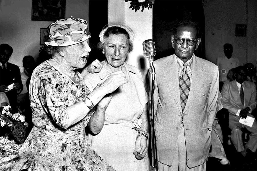 ২৭ জুন চলে গেল— হেলেন কেলারের জন্মদিন। শরীর-মনে প্রতিবন্ধকতা নিয়ে বেঁচে থাকা মানুষেরই নয় শুধু, সবার প্রেরণা তিনি। পঁচিশ বছর হেলেন কেলারের সঙ্গে জড়িত ছিলেন ভিক্টোরিয়া হুগো, সেই সব স্মৃতি নিয়ে লিখেছিলেন একটি বই, রামকৃষ্ণ মিশন ব্লাইন্ড বয়েজ’ অ্যাকাডেমি নরেন্দ্রপুর থেকে ১৯৮৩ সালে বেরিয়েছিল তৎকালীন আশ্রমাধ্যক্ষ স্বামী অসক্তানন্দের উদ্যোগে। চল্লিশ বছর পর, হেলেন কেলারের ১৪৪তম জন্মবার্ষিকীতে পুনর্মুদ্রিত হল সেই বই— হেলেন কেলার’স রিফ্লেকশনস। সেই সঙ্গে ২৭ জুন রাজ্য সরকারের নারী ও শিশু কল্যাণ এবং সমাজকল্যাণ বিভাগের উদ্যোগে নরেন্দ্রপুর ব্লাইন্ড বয়েজ়’ অ্যাকাডেমিতে পালিত হল ‘শ্রবণ ও দৃষ্টি প্রতিবন্ধী দিবস’ও: শহরের নানা স্কুলের দৃষ্টি-প্রতিবন্ধী পড়ুয়াদের নিয়ে ক্লে মডেলিং ও ঘ্রাণ-দক্ষতা প্রতিযোগিতা, গান আবৃত্তি শ্রুতিনাটকে; আলোচনায়। ছবিতে ১৯৫৫ সালে ক্যালকাটা ব্লাইন্ড স্কুলে হেলেন কেলার (বাঁ দিকে)।