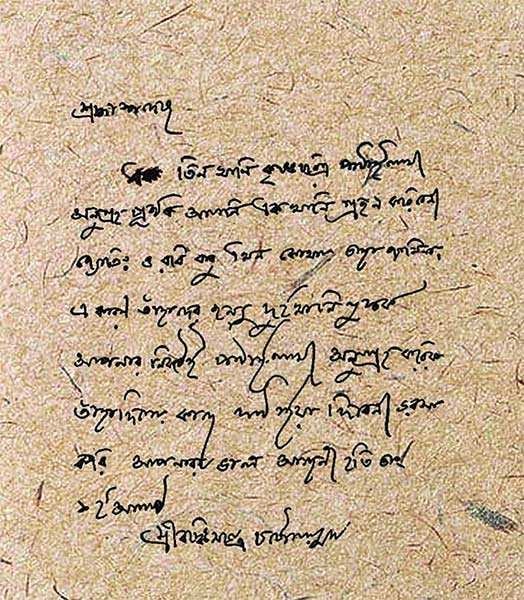 “ভাষায় প্রাণ সকলের চাইতে বড়ো, জাতির প্রাণ অপেক্ষা ভাষার প্রাণ বেশি বড়ো... সেই প্রাণদানকারীকে আজ আমাদের সকলের নমস্কার।” বঙ্কিমচন্দ্র চট্টোপাধ্যায়ের জন্মস্থানে আয়োজিত এক সভায় বলেছিলেন রবীন্দ্রনাথ। সাহিত্যসম্রাটের ১৮৫তম জন্মবার্ষিকী চলে গেল গত ২৯ জুন। নৈহাটি কাঁটালপাড়ায় তাঁর জন্মভিটে তথা বসতবাড়িতে রাজ্য সরকারের উচ্চশিক্ষা দফতর পোষিত বঙ্কিম-ভবন গবেষণা কেন্দ্রে হয়ে গেল চার দিন ব্যাপী বঙ্কিম-স্মরণানুষ্ঠান, ২৬ থেকে ২৯ জুন। উদ্বোধনে ছিলেন ব্রাত্য বসু-সহ বিশিষ্টজন, পরে সাহিত্যিকদের কথালাপ: এ কালের দৃষ্টিতে বঙ্কিমচন্দ্র। পরবর্তী দিনগুলিতেও ছিল প্রাসঙ্গিক আলোচনা; এ ছাড়াও নানা সাংস্কৃতিক গোষ্ঠীর নিবেদনে বঙ্কিম-আশ্রয়ী শ্রুতিনাটক, বঙ্কিমচন্দ্রের গান, স্কুলপড়ুয়াদের উপস্থাপনায় বঙ্কিম-ভাবনায় সমাজচেতনা ও স্বাদেশিকতার চিত্রায়ণ। ছবিতে দ্বিজেন্দ্রনাথ ঠাকুরকে লেখা বঙ্কিমচন্দ্রের চিঠি, আমন্ত্রণপত্র থেকে।