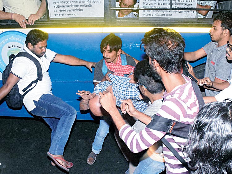 সন্ধ্যায় একই ভাবে যাদবপুরে একটি হিন্দুত্ববাদী সংস্থার জমায়েতের উপরে হামলা হয়। এ ক্ষেত্রে হামলার অভিযোগ এসএফআই-এর বিরুদ্ধে। যাদবপুরের সিপিএম বিধায়ক সুজন চক্রবর্তীর মন্তব্য, ‘‘একদল লোক লেনিনের মূর্তি ভাঙতে যাচ্ছিল। সাধারণ মানুষ তার প্রতিবাদ করেছে।’’ কিন্তু পুলিশ সেই হামলা ঠেকাতে কী করছিল, সেই প্রশ্নটা উঠেছে এখানেও। কলকাতা পুলিশের প্রাক্তন কর্তা সমীর গঙ্গোপাধ্যায়ের প্রশ্ন, ‘‘কেন যথেষ্ট বাহিনী দিয়ে ব্যারিকেড করে পরিস্থিতি সামাল দেওয়া গেল না? বাইরে থেকে লোক এসে মারার সুযোগ পেল কী করে?’’ লালবাজারের মুখে কুলুপ।