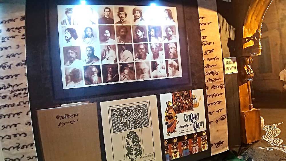 সারপেন্টাইন লেনে প্রবেশের মুখে গেট বসানো হয়েছে জোড়াসাঁকো ঠাকুরবাড়ির গেটের আদলে। পাড়ার দু’দিকের দেওয়াল জুড়ে লাগানো হয়েছে নানা গদ্য, কবিতার ফ্লেক্স। কিছু বাড়ির রকে বাদ্যযন্ত্র, পড়ার টেবিল-চেয়ার পেতে ফুটিয়ে তোলা হয়েছে বৈঠকখানার দৃশ্য। একটি রকে রাখা রবীন্দ্রনাথের হাতে আঁকা ছবির ক্যানভাস। উদ্যোক্তারা জানাচ্ছেন, রবীন্দ্রনাথের তরুণ বয়সের বেশ কিছু ছবি লাগানোর পাশাপাশি লিখতে লিখতে রবীন্দ্রনাথের ছবি আঁকার প্রবণতার দিকটিও তুলে ধরা হয়েছে।