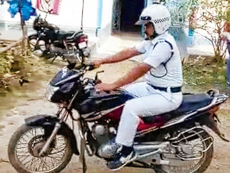 কাজে ফেরার আগে চলছে মোটরবাইকে চড়ার মহড়া।