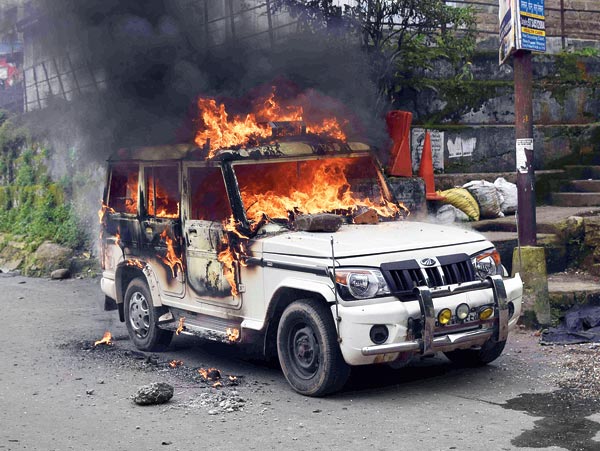এর আগে আগুন লাগানো হয়েছিল ‘হেরিটেজ’ কার্শিয়াং রেল স্টেশনে। মঙ্গলবার গভীর রাতে আগুন দেওয়া হল কার্শিয়াঙেরই রাজরাজেশ্বরী হলে, টুরিস্ট লজের রান্নাঘরে। গত ২৪ ঘণ্টায় পুড়ল মিরিকের বিডিও অফিস, পূর্ত দফতরের বাংলো, দার্জিলিঙের জজবাজারে ডিএসপি-র গাড়ি। আর এই সব ঘটনার মধ্যে ফের উঠল সেই পুরনো প্রশ্ন: তবে কি ‘আন্দোলনের’ রাশ বিমল গুরুঙ্গদের হাত থেকে অনেকটাই বেরিয়ে গিয়েছে?