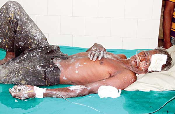 হাসপাতালে আহত পরশনাথ রায়।—নিজস্ব চিত্র।