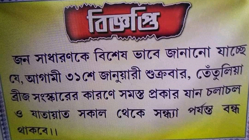 ব্রিজ সংস্কারের বিজ্ঞপ্তি।—নিজস্ব চিত্র।