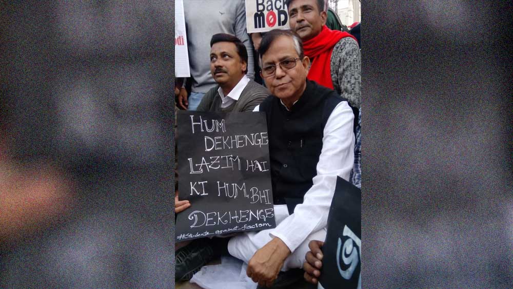 প্রতিবাদে শামিল মহম্মদ সেলিম। —নিজস্ব চিত্র।