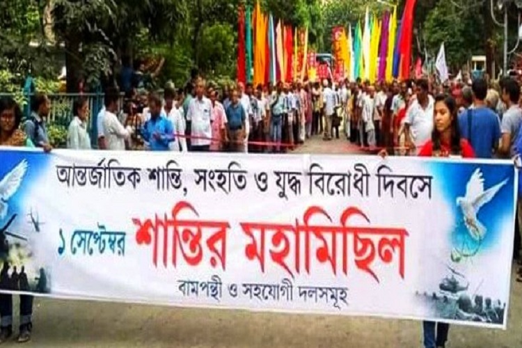 মৌলালির রামলীলা ময়দান থেকে শুরু হয়ে শিয়ালদহ, মহাত্মা গাঁধী রোড হয়ে মহাজাতি সদনের সামনে শেষ হয় বামেদের মিছিল। বামফ্রন্টের সব শরিক ছাড়াও এসইউসি, সিপিআই (এম-এল) লিবারেশন, পিডিএসের মতো সহযোগী দলগুলিও মিছিলে সামিল হয়েছিল। মিছিলে ভিড় হয়ছিল ভালই। মেট্রোর কাজের জন্য উত্তর ও মধ্য কলকাতার কয়েকটি রাস্তায় যান চলাচল নিয়ন্ত্রণ করেছে পুলিশ। তার উপরে বামেদের মিছিলের জেরে রবিবার হলেও যান-বাহন চলাচল জট পাকিয়ে ছিল বেশ কিছু ক্ষণ। জার্মানির পোল্যান্ড আক্রমণের মাধ্যমে দ্বিতীয় বিশ্বযুদ্ধের সূচনার দিনটি স্মরণে রেখে প্রতি বছরই ১ সেপ্টেম্বর শহরে শান্তি মিছিল করে বামেরা।