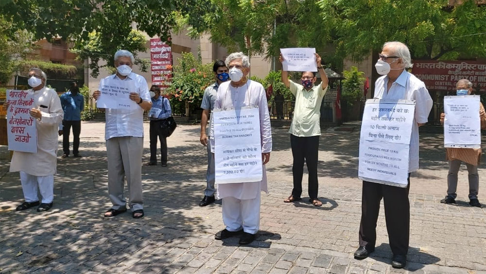ঘূর্ণিঝড় ‘আমপান’কে জাতীয় বিপর্যয় ঘোষণা, সব হাতে কাজ, সকলের জন্য খাদ্য ও চিকিৎসা, লকডাউনে বিপন্ন মানুষের হাতে আর্থিক সাহায্য-সহ যে দাবিগুলি নিয়ে বামেদের কর্মসূচি, তা মূলত কেন্দ্রীয় সরকারের কাছেই। সারা দেশেই মঙ্গলবার কর্মসূচি পালন করেছে সব বাম দল। দিল্লির রাস্তায় দাবি জানাতে নেমেছিলেন সীতারাম ইয়েচুরি, প্রকাশ কারাটেরা। কলকাতায় রানি রাসমণি অ্যাভিনিউয়ের দু’টি লেনে ভাগ করে অল্প লোক নিয়ে বিক্ষোভ জমায়েতের ডাক দিয়েছিল বামফ্রন্ট ও সহযোগী মিলে ১৬ দল। কিন্তু সেখানে এ দিন গোড়া থেকেই ছিল নাটকীয় ঘটনা! কর্মসূচির জন্য বাম নেতারা পৌঁছতেই সূর্যবাবু, নরেন চট্টোপাধ্যায়, সমীর পূততুণ্ড, কার্তিক পাল, বাসুদেব বসুদের গ্রেফতার করে দু’টি গাড়িতে তুলে নিয়ে যায় পুলিশ।