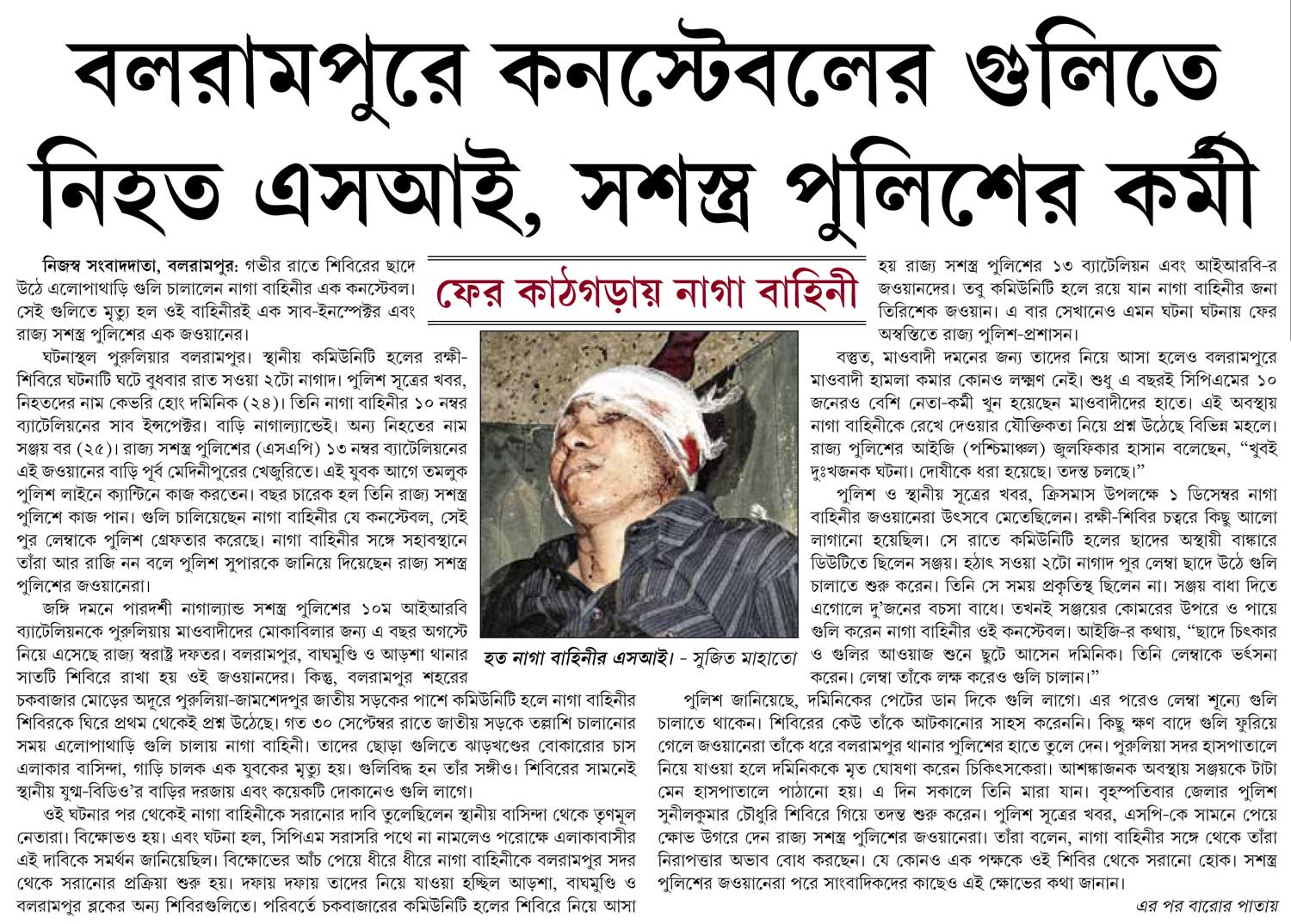 যদিও ওই ঘটনার আগে থেকেই নানা অভিযোগ উঠেছে নাগা জওয়ানদের বিরুদ্ধে। ওই বছরই ৩০ সেপ্টেম্বর বলরামপুর বাজারে জাতীয় সড়কের উপরে গাড়িতে গুলি চালানোর অভিযোগ ওঠে নাগা বাহিনীর এক জওয়ানের বিরুদ্ধে। গুলিবিদ্ধ হয়ে এক যাত্রীর মৃত্যু হয়। এক জন আহত হন। তা নিয়েও তুমুল হইচই হয় জেলায়। বলরামপুরের ঘটনার পরে কোনও নাগা জাওয়ানের বিরুদ্ধে খুনের অভিযোগ না উঠলেও ছোটখাটো গোলমালে বারবার তারা জড়িয়েছে।