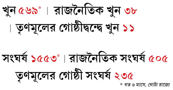 সোজা-সাপ্টা উত্তর হতে পারে, না। কারণ, মুখ্যমন্ত্রী তথা তৃণমূলনেত্রী সাফ জানিয়ে দিয়েছেন, বিভিন্ন জেলা থেকে সরকারি সূত্রে পাওয়া খুন-জখম-সংঘর্ষের এ সব পরিসংখ্যান বেবাক ভুল। কাজেই তিনি এ নিয়ে কোনও প্রতিক্রিয়া দেবেন না।
