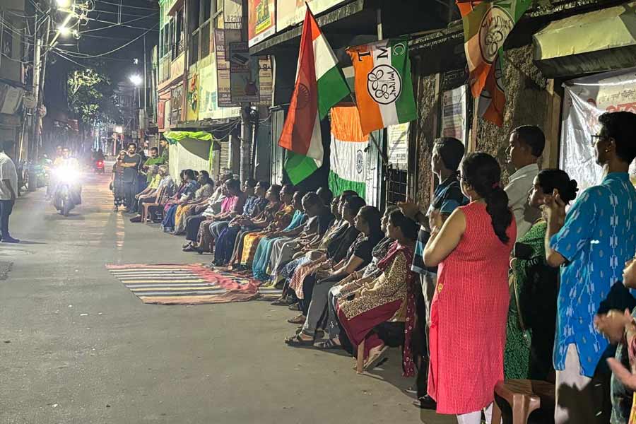 পানিহাটি থেকে ১৪ কিলোমিটার দীর্ঘ মানব বন্ধন শুরু হল। শামিল মূলত মহিলারাই। সকলের মুখে একটাই স্লোগান, ‘জাস্টিস ফর আরজি কর’। রাত যত বাড়ছে, মানব বন্ধন ততো দীর্ঘ হচ্ছে।