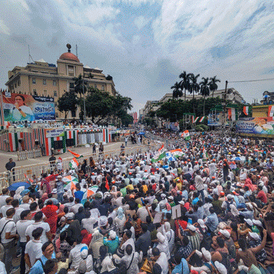 ধর্মতলায় ভিক্টোরিয়া হাউসের সামনে ২১ জুলাইয়ের মঞ্চের সামনে সকাল থেকেই ভিড় জমাতে শুরু করেন কলকাতা-সহ বিভিন্ন জেলা থেকে আগত তৃণমূলের নেতা-কর্মীরা। বেলা গড়ানোর সঙ্গে সঙ্গে সেই ভিড় আরও বাড়ে। সকলেই শুনতে এসেছেন তৃণমূলনেত্রী মমতা বন্দ্যোপাধ্যায় কী বার্তা দেন ২১ জুলাইয়ের মঞ্চ থেকে।