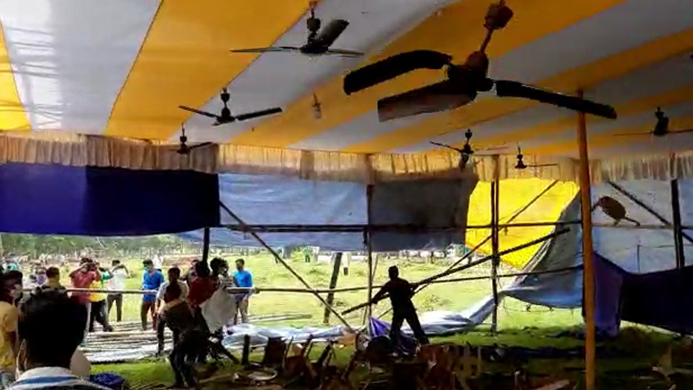 সেই জমায়েত থেকেই শুরু হয় তাণ্ডব। উত্তেজিত জনতার একটি বড় অংশ নির্মাণ সামগ্রী লন্ডভন্ড করে দেন। তার পর এলোপাথাড়ি ভাঙচুর চলে বিশ্ববিদ্যালয়ের অস্থায়ী ক্যাম্পে। সেই ক্যাম্প ভেঙে দেওয়া হয়। তার মধ্যেই নির্মা্ণের জন্য আনা পে লোডার দিয়ে বিশ্ববিদ্যালয়ের একটি গেটের স্তম্ভ ভেঙে দেয় জনতার একাংশ। তারা বিশ্ববিদ্যালয়ের একটি গেটের তালা ভেঙে ভিতরে ঢুকে পড়ে ভিতরে। অভিযোগ, সেখানেও ব্যাপক ভাঙচুর চালানো হয়।