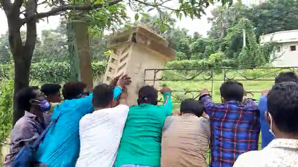 ভেঙে ফেলা হয় বিশ্বভারতীর একটি গেটের স্তম্ভ।