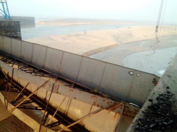লকগেটের বেঁকে যাওয়া অংশ।