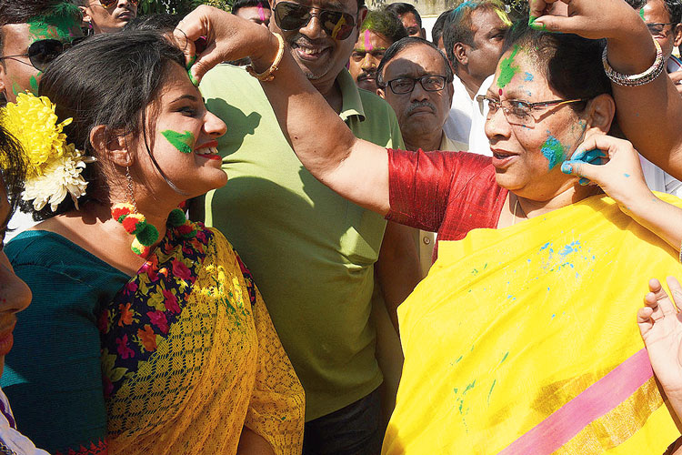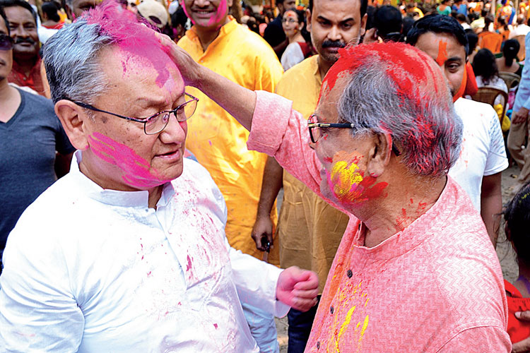 ভোটের আসানসোলে এ দিন দুপুরে স্ত্রী ও মেয়েকে নিয়ে দলীয় কর্মী-সমর্থক এবং জনতার সঙ্গে উৎসবে মাতেন বিজেপি সাংসদ তথা কেন্দ্রীয় মন্ত্রী বাবুল সুপ্রিয় (রাতে ঘোষণা হয় তিনিই ওই কেন্দ্রের বিজেপি প্রার্থী)। তিনি বলেন, ‘‘এই কেন্দ্রের তৃণমূল প্রার্থী মুনমুনদি-কে (সেন) দোলের শুভেচ্ছা জানাই। আজ রাজনৈতিক কথাবার্তা বলতে চাই না।’’ প্রায় একই সুর বর্ধমান-দুর্গাপুর কেন্দ্রের তৃণমূল প্রার্থী মমতাজ সংঘমিতার গলায়। তিনি বলেন, ‘‘আজ ভোটের কথা নয়। আনন্দ করার দিন। রঙের উৎসবে সকলকে রঙিন করে দেওয়ার দিন।’’