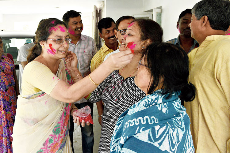 বীরভূমের তৃণমূল প্রার্থী শতাব্দী রায় বুধবারই বলেছিলেন, ‘‘রং মিলান্তির এই খুশির উৎসবে শামিল হব।’’ এ দিন সকালে তারাপীঠের পূর্বসাগর মোড়ে রঙের উৎসব ঘিরে জনসংযোগে মাতেন তিনি। বোলপুর লোকসভা কেন্দ্রের তৃণমূল প্রার্থী অসিত মালও রং খেলার মধ্য দিয়ে কাটালেন, সঙ্গে সারলেন প্রচারও। তাঁর কথায়, ‘‘রঙের উৎসবের দিন এক দিকে প্রচার, অন্য দিকে মানুষের কাছে পৌঁছতে পেরে ভাল লাগছে।’’ তবে এ দিন সিউড়ির বাড়িতেই