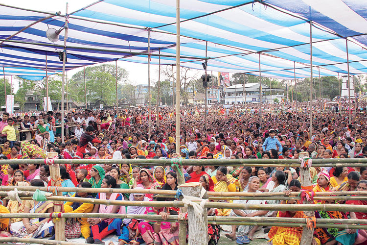 মোদীর সভার দিনেই দিনহাটায় মুখ্যমন্ত্রী মমতা বন্দ্যোপাধ্যায়ের সভায় জনজোয়ার। বুধবার। ছবি: হিমাংশুরঞ্জন দেব