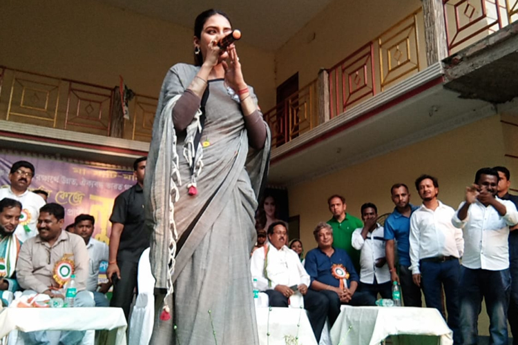 ভোট প্রচারে গিয়ে লোকনাথ মন্দিরে পুজো দিলেন বসিরহাটের তৃণমূল কংগ্রেস প্রার্থী নুসরত জাহান। বৃহস্পতিবার বিকেলে তিনি উত্তর ২৪ পরগনার বেড়াচাঁপার কাছে স্বরূপনগরে ভোট প্রচারে যান।