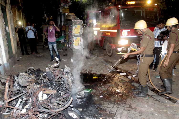 তাণ্ডবের পর, বিদ্যাসাগর কলেজের সামনে। ছবি: পিটিআই।
