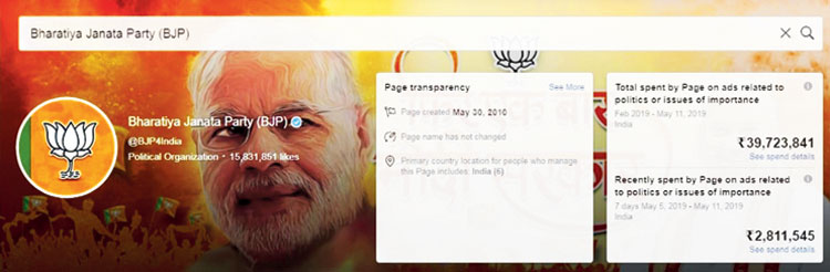 ২০১৯ সালের ফেব্রুয়ারি থেকে চলতি মে মাসের ১১ তারিখ পর্যন্ত এই পেজে তিন কোটি ৯৭ লক্ষ ২৩ হাজার ৮৪১ টাকার বিজ্ঞাপন দিয়েছে বিজেপি। তার মধ্যে আবার ৫ মে থেকে ১১ মে পর্যন্ত খরচ করা হয়েছে ২৮ লক্ষ ১১ হাজার ৫৪৫ টাকা। এই বিজ্ঞাপনে গুরুত্ব দেওয়া হয়েছে বাংলার ফেসবুক ব্যবহারকারীদের। কোনও কোনও বিজ্ঞাপনের জন্য খরচ করা হয়েছে ১০ হাজার থেকে এক লক্ষ টাকা। বিজ্ঞাপনগুলি দেখেছেন এক লক্ষ থেকে পাঁচ লক্ষ ফেসবুক ব্যবহারকারী। এই সব বিজ্ঞাপনে যত খরচ করা হয়, তত বেশি ফেসবুক ব্যবহারকারীদের কাছে তা পৌঁছয়।