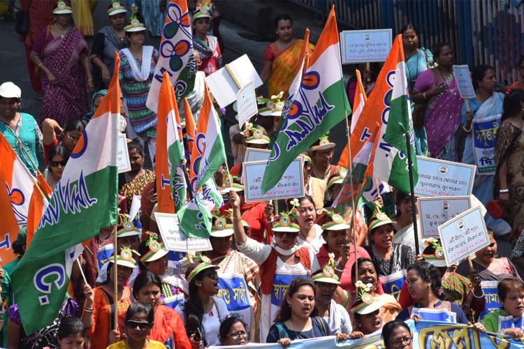 আন্তর্জাতিক নারী দিবসে তৃণমূলের পদযাত্রা। —নিজস্ব চিত্র