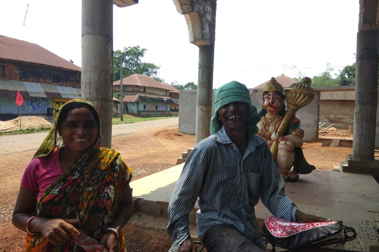 শালবনির ভোগলু মাহাত এবং তাঁর স্ত্রী আরতি। পিছনে সদ্য তৈরি হওয়া বজরঙ্গবলী মন্দির।এ রকমই জঙ্গলমহলের আনাচে কানাচে গজিয়ে উঠেছে হনুমান মন্দির।