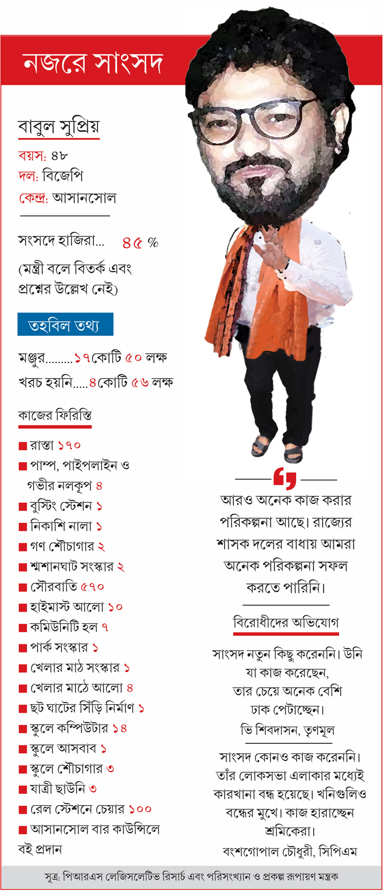 সাংসদ নিজে কী বলছেন? আর বিরোধীরা? সব মিলিয়ে এক নজরে আপনার সাংসদের রিপোর্ট কার্ড। আজ আসানসোলের সাংসদ বাবুল সুপ্রিয়।