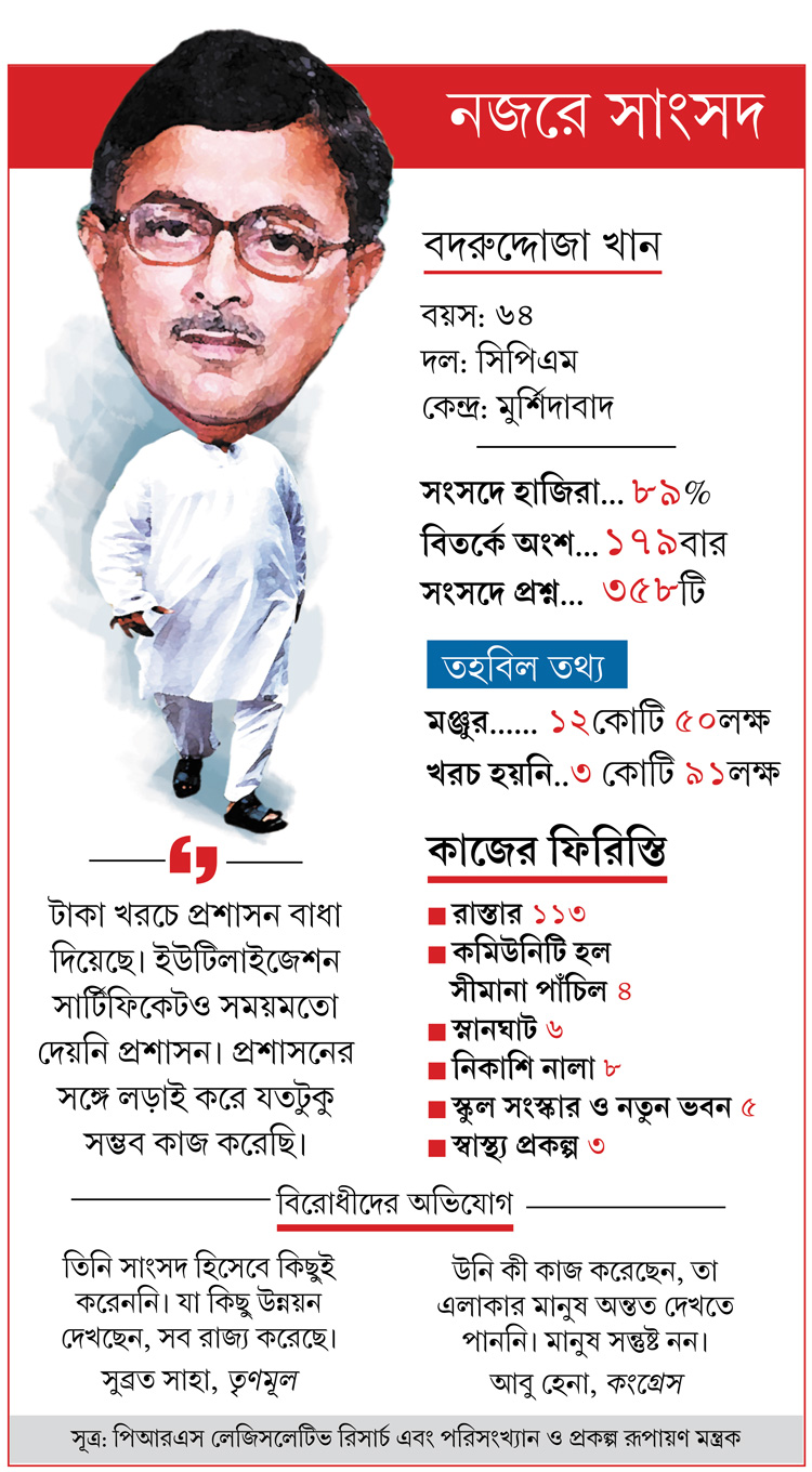 সাংসদ নিজে কী বলছেন? আর বিরোধীরা? সব মিলিয়ে এক নজরে আপনার সাংসদের রিপোর্ট কার্ড। আজ মুর্শিদাবাদের সাংসদ বদরুদ্দোজা খান।