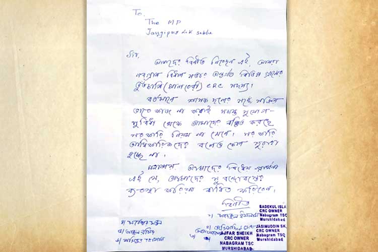 নিজেদের দুরবস্থার কথা জানিয়ে সাংসদকে চিঠি স্থানীয় চাষিদের। ছবি: প্রতিবেদক