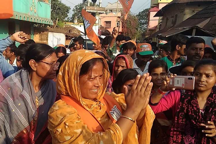 ভোটপ্রচারে বিজেপি প্রার্থী মাফুজা খাতুন। ছবি: প্রতিবেদক
