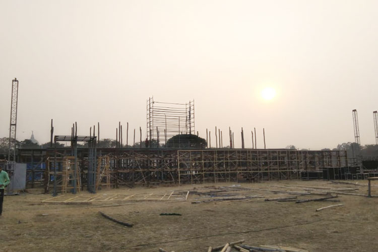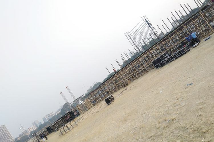 পাঁচটি মঞ্চ এবং তার পিছনের বিশ্রান্তি এলাকাকে টিনের উঁচু দেওয়ালে ঘিরে ফেলা হয়েছে ইতিমধ্যেই। ব্রিগেডের অনেকটা অংশকেই বাঁশের ব্যারিকেডের মাধ্যমে আলাদা আলাদা অংশ হিসেবে ভাগ করে দেওয়া হয়েছে। সাউন্ড সিস্টেম এবং মাইক লাগানোর কাজও বুধবারের মধ্যেই সেরে ফেলার চেষ্টা হচ্ছে।