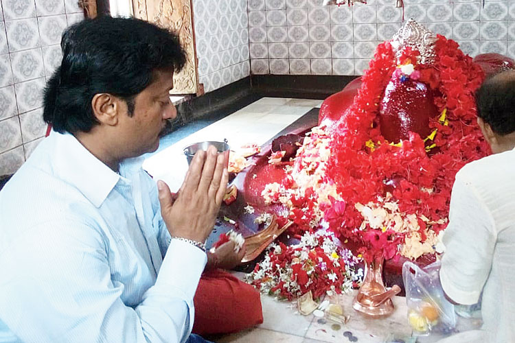 লাভপুরের ফুল্লরা মন্দিরে কংগ্রেসের অভিজিৎ সাহা।