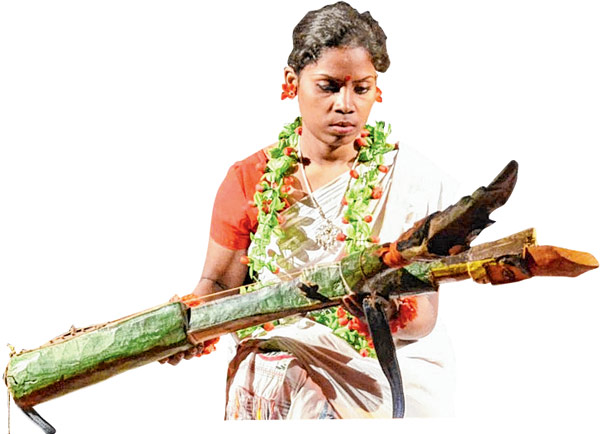 সম্প্রতি বীরভূমের ইলামবাজারের দ্বারোন্দায় ‘আদিবিম্ব’র মঞ্চে সাঁওতালি ভাষায় ‘রক্তকরবী’ অবলম্বনে ১৭ জন সাঁওতাল ছেলেমেয়ে অভিনীয় করল নাটক ‘আরা বাহা’। সেখানেই নন্দিনী চরিত্রটিতে অভিনয় করে সাড়া ফেলেছে লক্ষ্মী। কেন না, সমাজ-ব্যবস্থার জাঁতাকলের বিরুদ্ধে শান্ত নন্দিনীর প্রায় নিঃশব্দ লড়াই ‘আরা বাহা’তে তাঁর নিজেরও। লক্ষ্মী কখনও ‘রক্তকরবী’ পড়েনি। শান্তিনিকেতনে গিয়ে দেখেনি বিশ্বভারতীর কোনও রবীন্দ্র-নৃত্যানুষ্ঠানও। নাটকের পরিচালক ও শিল্প-নির্দেশক পার্থ গুপ্তর মুখে গল্প শুনেই সেই অর্থে ‘নন্দিনী’ চরিত্রে তাঁর প্রথম অভিনয়। ‘‘জানেন, বিশুপাগলের ওই গানটা এখনও কানে বেজে চলেছে, ‘আমেএম জতেৎ কিডিং আ/ ইঞ সুখ ইঞ য়াম কেদা (ও চাঁদ চোখের জলে লাগল জোয়ার)’। জানি না, কী করে কী হল। এত দিন কেবল নাচতাম। এখন মনে হচ্ছে অভিনয়টাও চালিয়ে যেতে পারব,’’—বলছেন বোলপুরের পূর্ণিদেবী কলেজের স্নাতকের ছাত্রী লক্ষ্মী। নাটকে তাঁর মুখে সংলাপ শুনে বিস্মিত এলাকাবাসীও। হতবাক বাবা সনাতন কিস্কু! ‘‘ও তো বাড়িতে কখনও কথাই বলে না। এত চুপচাপ মেয়ের মুখে কী করে মঞ্চে কথা ফুটল!’’ সনাতনবাবু সামান্য চাষের কাজ করেন, কখনও রাজমিস্ত্রিরও। শালের জঙ্গল ঘেরা মাটির ঘর। দাদা অলচিকি স্ক্রিপ্ট শেখায়, সাঁওতাল পরবে মাদল বাজায়। এই নিয়েই লক্ষ্মীদের ঘরকন্না।