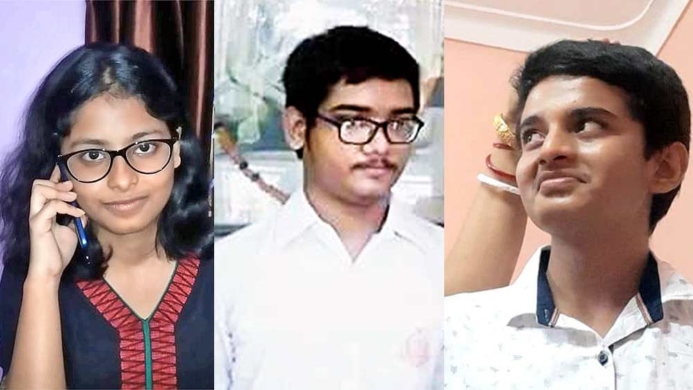 সম্মিলিত তৃতীয় দেবস্মিতা মহাপাত্র (বাঁ-দিক থেকে), অরিত্র মাইতি এবং সৌম্য পাঠক। বুধবার। —নিজস্ব চিত্র।