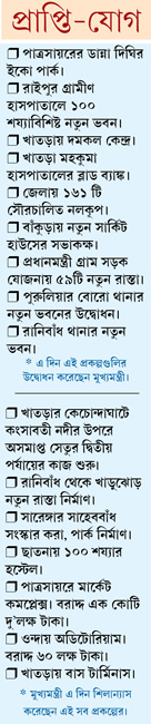 সামনেই বিধানসভা ভোট। সেই ভোটকে যে পাখির চোখ করছেন তৃণমূল নেত্রী এদিন বেশকিছু প্রকল্পের শিলান্যাস, উদ্বোধন ও ঘোষণার পাশাপাশি দলের বিভিন্ন স্তরের জন প্রতিনিধিদের ভাল করে কাজ করার নির্দেশের মধ্যে তা স্পষ্ট হল মঙ্গলবার। সভায় তৃণমূল নেত্রী বলেন, “গ্রামসভা, পঞ্চায়েত সমিতি, জেলা পরিষদে যাঁরা দায়িত্বে রয়েছেন তাঁদেরকে ভাল করে কাজ করতে হবে। দীর্ঘদিন ধরে সিপিএমের আমলে কাজ হয়নি। তাই এলাকার মানুষের প্রত্যাশা আমাদের কাছে অনেক বেশি।’’ নাম না করে মাওবাদীদের প্রসঙ্গও এসেছে তাঁর বক্তব্যে। বলেছেন, “সারেঙ্গা ছিল মুক্তাঞ্চল। বাইরে থেকে এখানে মানুষ আসতে ভয় পেত। সারেঙ্গা, রাইপুর, ঝাড়গ্রাম, লালগড়, বান্দোয়ান, বাঘমুন্ডি – সব এলাকা থমথমে ছিল। বিকেলের পর বাস চলাচল করত না। সেই পরিস্থিতি আর নেই। শান্তি বিরাজ করছে।’’