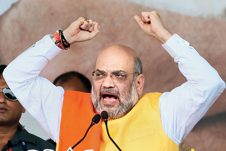 ঝাড়খণ্ডের জামতাড়ায় এক সভায় অমিত শাহ। বুধবার। ছবি: পিটিআই।