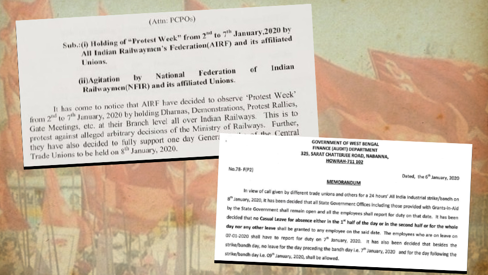 বিতর্কের শুরু অবশ্য রেল এবং রাজ্য সরকারের দু’টি নোটিসকে কেন্দ্র করে। প্রথম নোটিসটি কয়েক দিন আগেই রেল মন্ত্রকের তরফ থেকে জারি করা হয়েছিল। ওই নোটিসে বলা হয়েছিল, ধর্মঘটের দিন কোনও রকমের ছুটির আবেদন মঞ্জুর করা হবে না। সব রেলের জেনারেল ম্যানেজারকে এই নির্দেশ লিখিত ভাবে জানিয়ে দেওয়া হয়েছে। অন্যথায় রেলওয়ে অ্যাক্ট ১৯৮৯-এর ১৭৩, ১৭৪, ১৭৫ ধারায় শাস্তিমূলক ব্যবস্থা নেওয়া হবে।