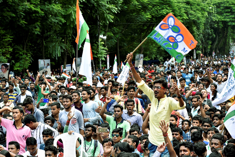 দেশকে ভাঙার ষড়যন্ত্র চলছে, টাকা দিয়ে ভোট কেনা হচ্ছে, কুৎসা-অপপ্রচার চলছে। অতএব রুখে দাঁড়াতে হবে, আত্মসমর্পণ চলবে না, যোগ্য জবাব দিতে হবে। প্রতিষ্ঠা দিবসের সমাবেশে তৃণমূল ছাত্র পরিষদকে তৃণমূল চেয়ারপার্সনের মূল বার্তা এটাই। মেয়ো রোডের সভামঞ্চ থেকে মঙ্গলবার বিজেপিকে তীব্র আক্রমণ করলেন মমতা বন্দ্যোপাধ্যায়। জঙ্গলমহলে বিজেপি ‘খুনোখুনি’ ফিরিয়ে আনছে এবং তিনি তা বরদাস্ত করবেন না বলে হুঁশিয়ারি দিলেন। আর এনআরসি প্রসঙ্গ টেনে স্বভাবসিদ্ধ ভঙ্গিতে জ্বলে উঠলেন আচমকা। হুঙ্কার দিয়ে বললেন, ‘‘এখানে আমরা বাঘের বাচ্চারা বসে আছি।’’