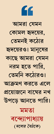 দলীয় সূত্রে বলা হচ্ছে, মুকুল প্রকাশ্যে যতই দলে থাকার কথা বলুন, মমতার সঙ্গে তাঁর দূরত্ব বাড়তে বাড়তে চরম সীমায় পৌঁছে গিয়েছে। মমতার জমানায় রেলের সংস্থা আইআরসিটিসি-র সঙ্গে সারদার চুক্তি নিয়ে বিতর্কের সময় দু’জনের সম্পর্কে চিড় ধরার সূত্রপাত। তার পর মুকুল কৌশলে ডেলোর বৈঠকের কথা কবুল করে নেওয়ায় মতান্তর বাড়ে। শেষমেশ বনগাঁ লোকসভা ও কৃষ্ণগঞ্জ বিধানসভার উপনির্বাচনের দিন মুকুল ও তাঁর ছেলের ভূমিকা নিয়ে দলীয় স্তরে অভিযোগের জেরে তা চূড়ান্ত আকার নেয়। দূরত্ব বাড়লেও মুকুলের ব্যাপারে এত দিন আস্তে-ধীরে চলছিলেন মমতা। তৃণমূলের সাংগঠনিক কর্ণধার দল ছাড়লে আঘাতের পরিমাণ কতটা হবে, তা নিয়ে সংশয় ছিল তাঁর মনে। কিন্তু উপনির্বাচনে জয় মমতাকে সাহস জুগিয়েছে। ফল প্রকাশের পরের দিনই মুকুলের ডানা ছাঁটার পরে আজ রীতিমতো হুঁশিয়ারি দিয়ে তিনি বলেছেন, “আমরা যেমন কোমল হৃদয়ের, তেমনই কঠোর হৃদয়েরও।... আক্রমণ করতে এলে প্রয়োজনে বাঘের নখ উপড়ে আনতে পারি।”