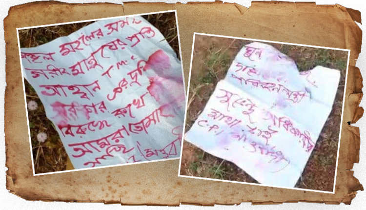 বুধবার মেদিনীপুরের গুরগুড়িপালে উদ্ধার হওয়া মাওবাদী পোস্টার। —নিজস্ব চিত্র