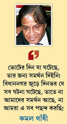 নিজের সম্প্রদায়ের সতীর্থদের চাপে এই মনোভাব জানিয়ে দিতে উদ্যোগী হতে হয়েছে কমলকেই। যিনি রবিবার বলেছেন, ‘‘সব্যসাচী দত্তের হয়ে আমরা প্রচার করেছিলাম। তৃণমূলের সরকার যে উন্নয়নমূলক কাজ করছে, তার জন্যই তাদের সমর্থন করার কথা বলেছিলাম। কিন্তু শনিবার ভোটের দিন যে ঘটনা ঘটেছে, তার জন্য সমর্থন দিইনি! বিধাননগর জুড়ে দিনভর যে ঘটনাক্রম চলেছে, তাতে না আমাদের সমর্থন আছে, না আমরা এ সব পছন্দ করছি!’’ কমলের প্রশ্ন, ‘‘মানুষের ভোটাধিকার থাকবে না?’’ সল্টলেকের অবাঙালি ভোটারদের তরফে শনিবার সকাল সাড়ে ৭টা থেকে একের পর এক ফোন এসেছে কমলের কাছে। প্রশ্ন উঠেছে, আমরা কাদের সমর্থন দিয়েছি? যারা বুথে কাউকে ঘেঁষতেই দিচ্ছে না! তাঁদের মধ্যে কারও কারও বক্তব্য, স্বয়ং সব্যসাচীর ওয়ার্ডে ভোট দিতে বিশেষ বাধা পেতে হয়নি। কিন্তু অন্যত্র যা হয়েছে, অকল্পনীয়!