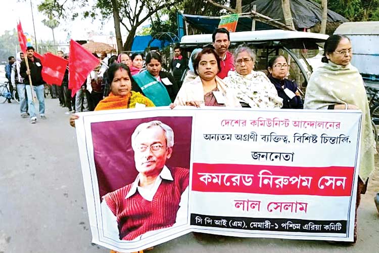 সোমবার ভোরে কলকাতায় এক নার্সিংহোমে প্রয়াত হয়েছেন রাজ্যের প্রাক্তন শিল্পমন্ত্রী তথা সিপিএমের পলিটব্যুরো সদস্য নিরুপম সেন। ২০১৩ সালে নভেম্বরে আলিমুদ্দিনে পার্টি-ক্লাসের পরেই অসুস্থ হয়ে পড়েন তিনি। গত মাসখানেক ধরে অবস্থার অবনতি হয়। এ দিন তাঁর মৃত্যুর খবর পৌঁছনোর পরে জেলার নানা এলাকায় শোকমিছিল হয়। নেতারা জানান, বুধবার দুপুরে কলকাতা থেকে দেহ বর্ধমানে পৌঁছনোর পরে জেলা পার্টি অফিসে রাখা হবে বেশ কিছুক্ষণ।