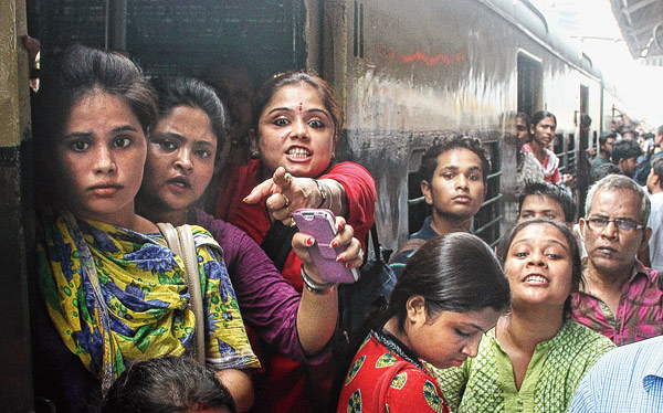 নারী-পুরুষের অধিকারবোধ নিয়ে বিরোধ বাদানুবাদের সীমানা ছাড়িয়ে পৌঁছে গেল ইট ছোড়াছুড়ি ও মারধরে। ট্রেন তথা কামরা সংরক্ষণের দাবি-পাল্টা দাবিকে কেন্দ্র করে শুরু হওয়া ওই সংঘাত বুধবার অবাধ নৈরাজ্যের চেহারা নেয়। তারই সুযোগ নিয়ে মহিলাদের গয়না ও জিনিসপত্র লুঠ করার পাশাপাশি ব্যাপক যৌন হেনস্থারও অভিযোগ উঠেছে। ট্রেনের কামরায় আক্রান্ত হয়ে রীতিমতো মৃত্যুভয় তাড়া করেছে মহিলা যাত্রীদের। গণ্ডগোলে পুলিশ-যাত্রী মিলিয়ে সাত জন জখম হয়েছেন।