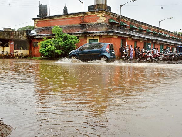 মেদিনীপুর শহরে কালেক্টরেট চত্বরে জমেছে জল। ছবি: সৌমেশ্বর মণ্ডল