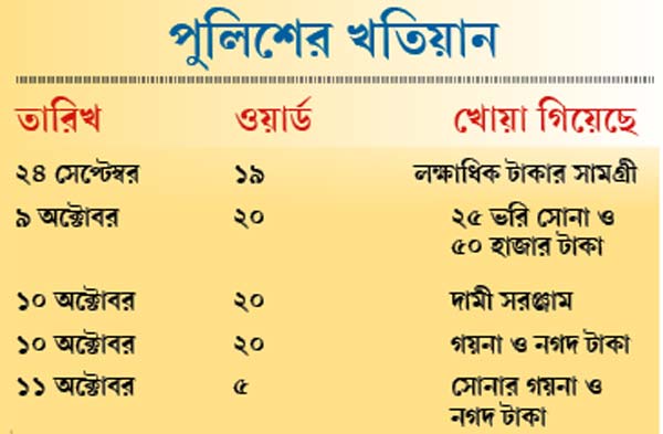 আর বুধবার সকালে দেখা যায়, তমলুক থানারমাত্র তিনশো মিটার দূরে আবাসবাড়ি এলাকার স্বপন হাজরার বাড়িতেও চুরি হয়ে গিয়েছে। অর্থাৎ চুরি হয়েছে দশমীর রাতে। দরজার তালা ভেঙে ও গ্রিল কেটে দুষ্কৃতীরা ঘরে ঢোকে বলে অভিযোগ। পেশায় ইঞ্জিনিয়ার স্বপনবাবু একটি নামী নির্মাণ সংস্থার সিনিয়র অফিসার পদে কর্মরত। কর্মসূত্রে বিদেশেও ছিলেন স্বপনবাবু। পুজোর ছুটিতে সপরিবারে নন্দীগ্রামে গ্রামের বাড়ি ঘুরতে গিয়েছিলেন। বুধবার সকালে বাড়ি ফিরে দেখেন, বাড়ির ঢোকার পথে গ্রিল ভাঙা। স্বপনবাবুর স্ত্রী জয়িতাদেবীর অভিযোগ, ‘‘কয়েক ভরি সোনার গয়না, নগদ টাকা, একটি ল্যাপটপ, দুটি ক্যামেরা, তিনটি মোবাইল ফোন নিয়ে গিয়েছে দুষ্কৃতীরা। পাঁচ বছর ধরে এখানে রয়েছি। এমন কখনও হয়নি।’’