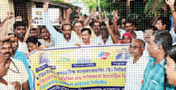নিরাপদবাবুর শাস্তির দাবিতে বিক্ষোভ। তমলুকে তোলা নিজস্ব চিত্র।