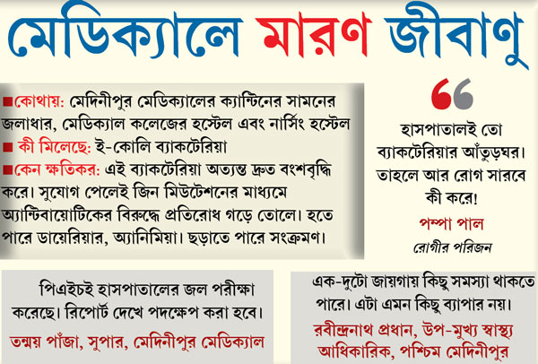 পানীয় জলের মধ্যে থিকথিক করছে মারণ ব্যাকটেরিয়া। তা-ও আবার খাস মেদিনীপুর মেডিক্যাল কলেজ ও হাসপাতাল চত্বরে!